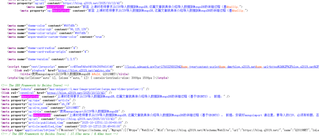 ARGON主题是一个非常好的Wordpress主题,其自带了一些SEO功能,但是这些功能还是不够完善,所以我们一般会在wordpress上安装一些SEO插件,比如THE SEO FRAMEWORK这个插件。但是如果安装了这个插件,不对ARGON主题进行些修改的话,则可能出现一些meta信息重复的问题(比如description标签)。这篇文章记录下如何对ARGON主题进行修改来避免这种情况。
