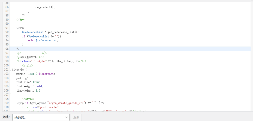 同样在主题文件编辑器找到template-parts/content-single.php ,在97行的时候加上下面的代码