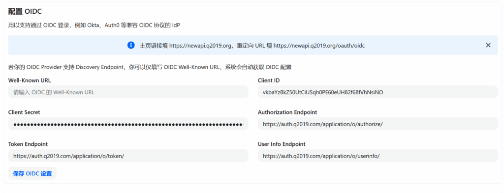 设置完后点击保存OIDC设置,刷新后即可使用Oauth登录newapi了。
