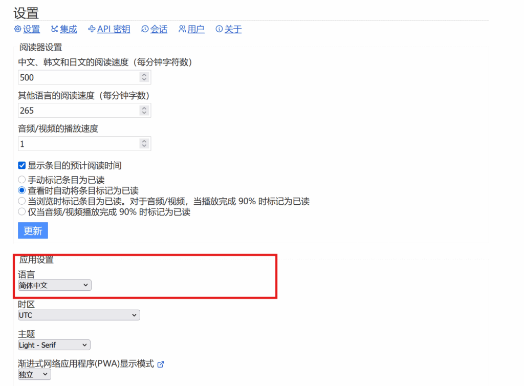 如果想要修改下界面,可以前往https://github.com/MaybeThisIsRu/awesome-miniflux?tab=readme-ov-file 找下自己喜欢的主题,拷贝对应的自定义CSS,到MINIFLUX后台设置中的自定义CSS部分,拷贝进去保存。