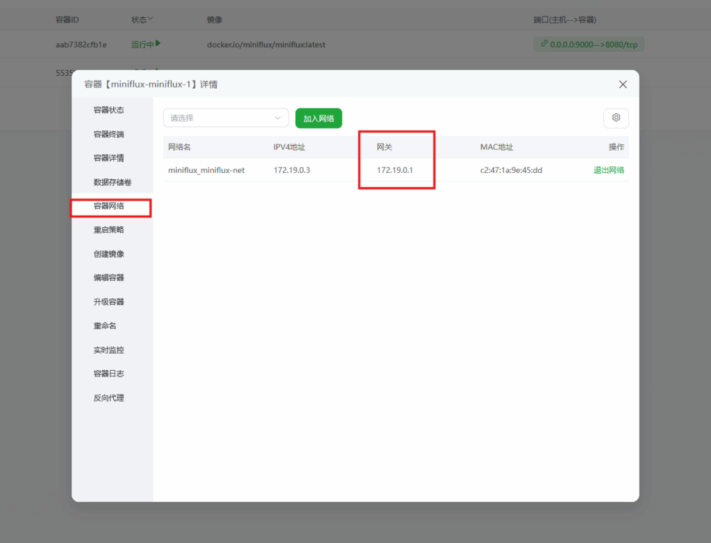 请注意,上面的命令中的172.17.0.0/16 请修改你对应的容器的网段。(如果不知道对应的网段的话,并且有宝塔的话。可以前往宝塔的容器管理中的设置、容器网络中查看网管板块,如下图红圈圈出的部分)
