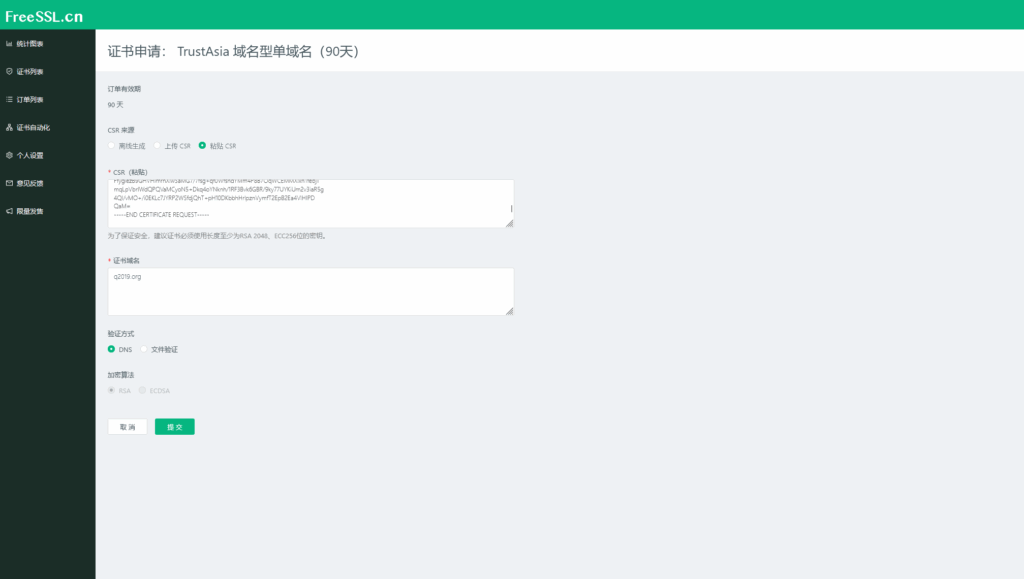 相比起以前的1年证书,现在只有90天的Trust Asia的DV证书免费。如果对TrustAsia有需求的话可以试一试,否则的话使用Let’s Encrypt更快捷一些。