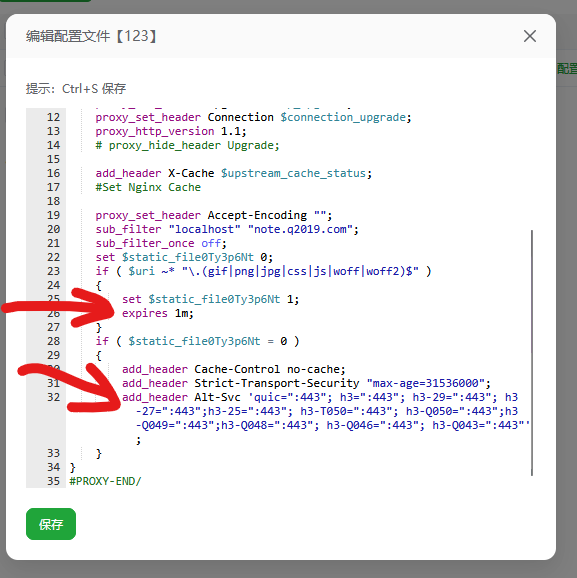 在新版本的宝塔面板安装的Nginx中,默认是启用了QUIC(HTTP3)的。但是如果我们给网站配置了反向代理,会发现我们的QUIC没有效果(即使我们开了443端口的),这篇文章就是如何配置宝塔面板的反向代理,让其也支持QUIC协议。