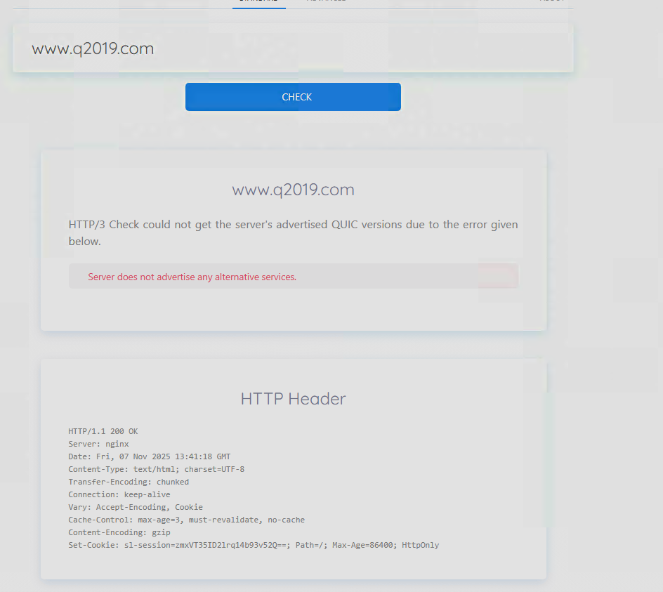 提示:您可以使用这个在线小工具查看您的站点是否支持HTTP3:https://http3check.net/