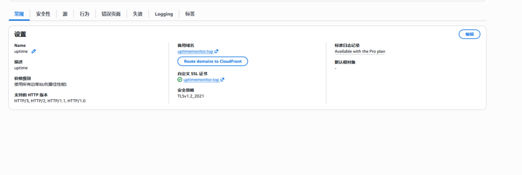 AWS提供了有一定免费额度的CDN网络(名字为CloudFront,且速度还可以),所以我便在这里写一篇文章,简单记录下给网站配置使用CloudFront的整个流程,本文以uptimemonitor.top这个域名作为例子。